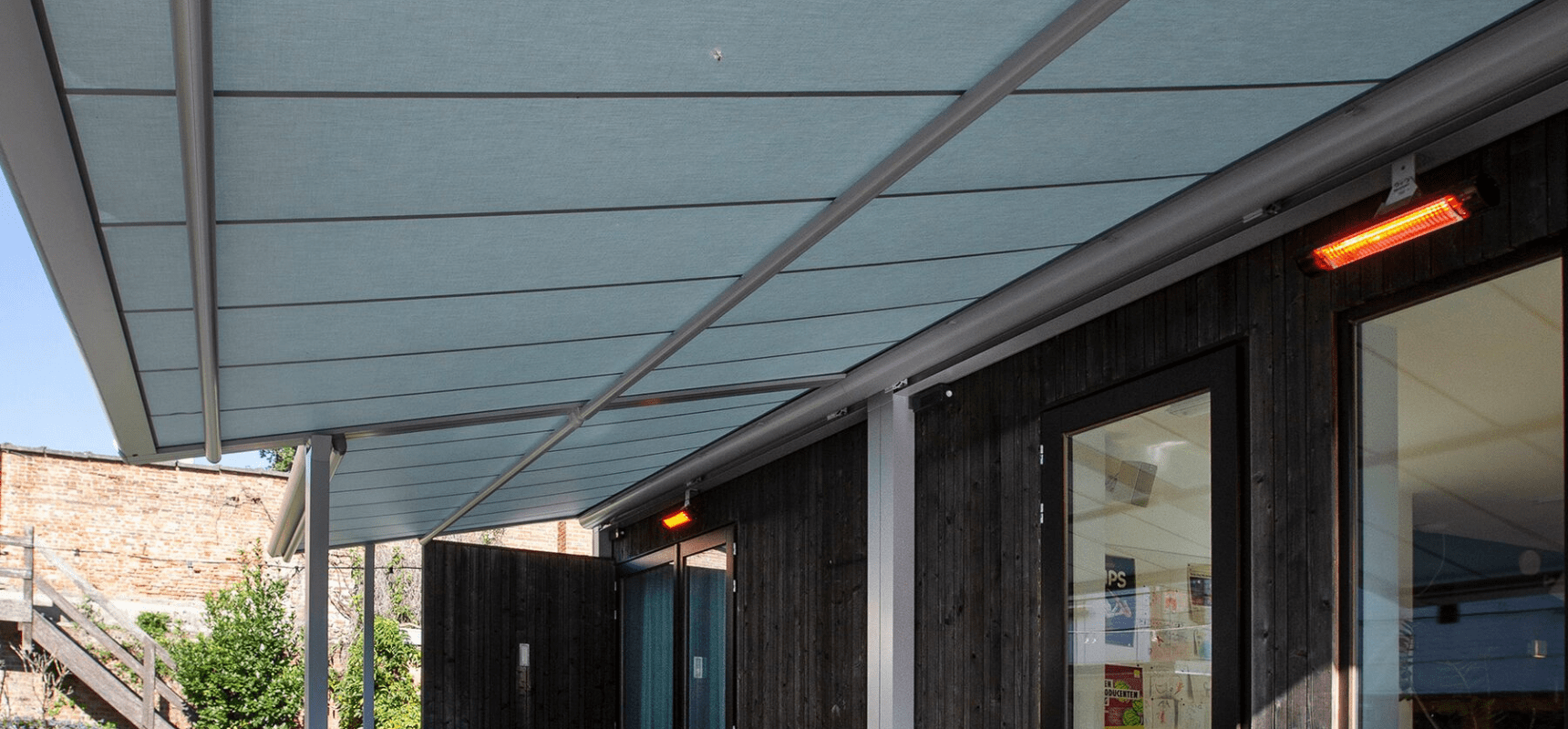 A pérgola Brustor B128 é uma solução versátil para proteção contra o sol, especialmente apreciada pelo seu design minimalista e amplas possibilidades de personalização. O seu design inteligente proporciona uma vista panorâmica do seu jardim e permite a entrada abundante de luz natural em sua casa. A B128 é sempre fixada na parede e junta as vantagens de um toldo com os benefícios de uma cobertura de pátio.
