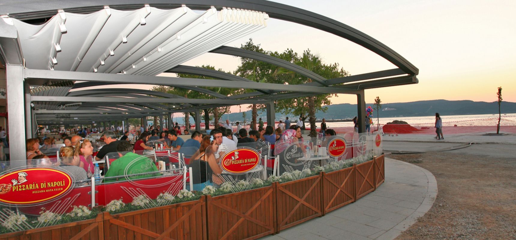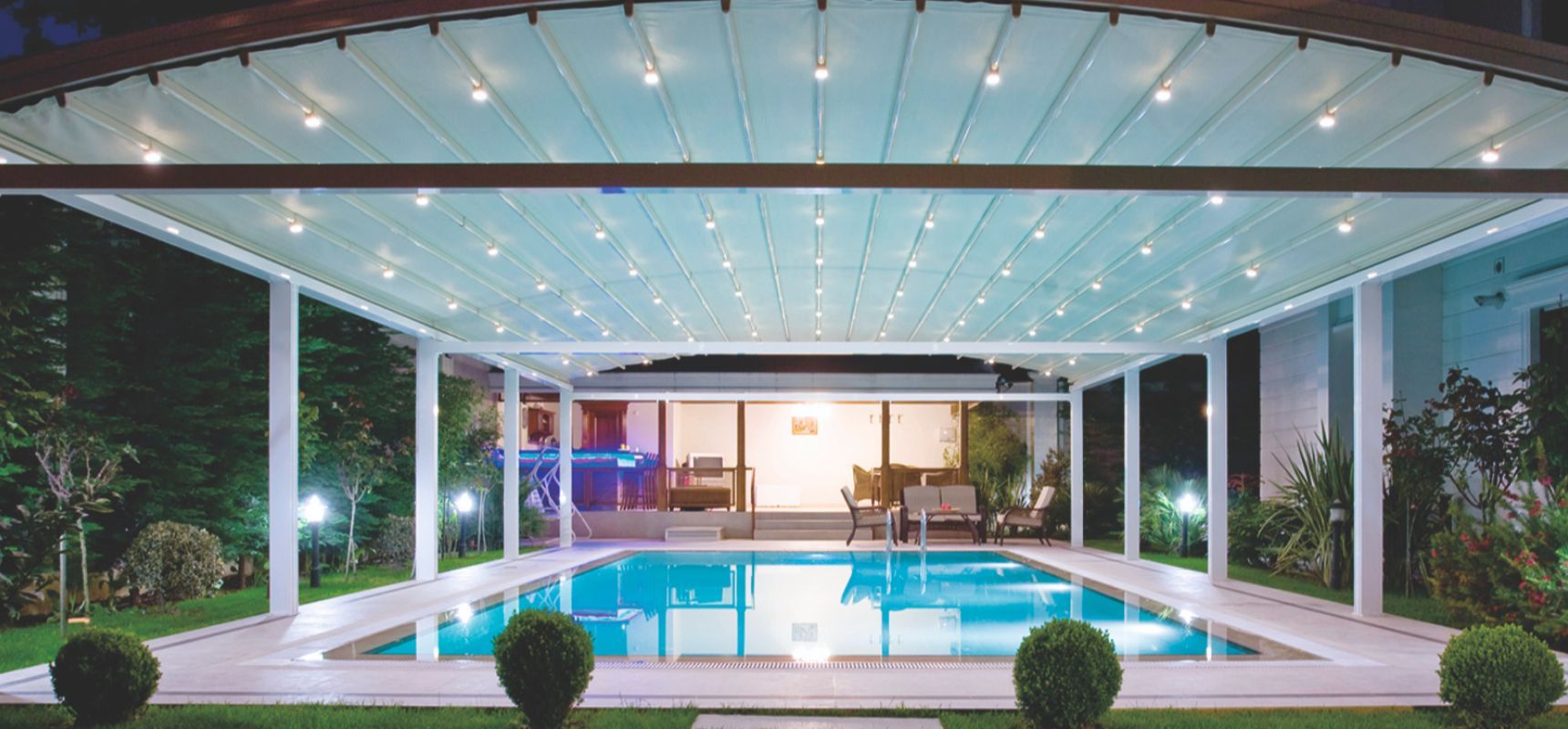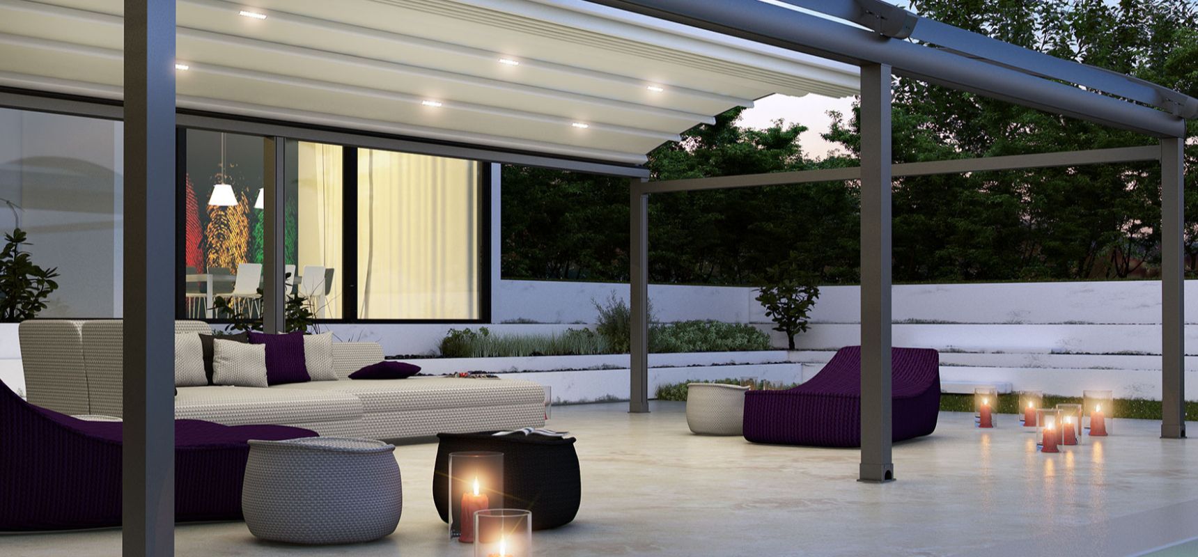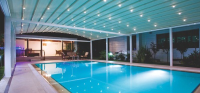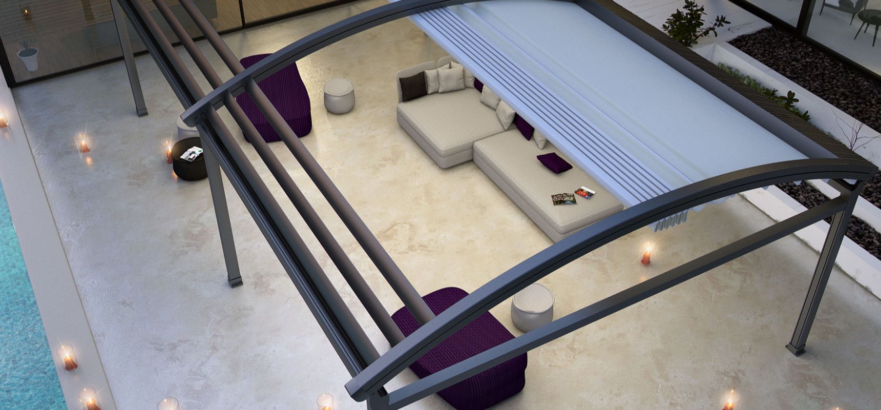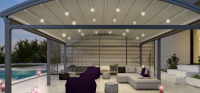 O sistema de pergolas retráteis curvas Luna oferece uma solução avançada para permitir que áreas externas sejam usadas em todas as condições climáticas. O sistema oferece uma classificação de vento até a classe Beaufort 11 (até 117 km/h) e foi projetado para resistir até mesmo às piores condições de chuva, granizo ou sol.
