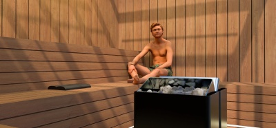 Com caixilharia preta e vidros incolores no teto, a sauna é inundada com luz natural. As pedras quentes para vapor completam esta experiência sensorial.