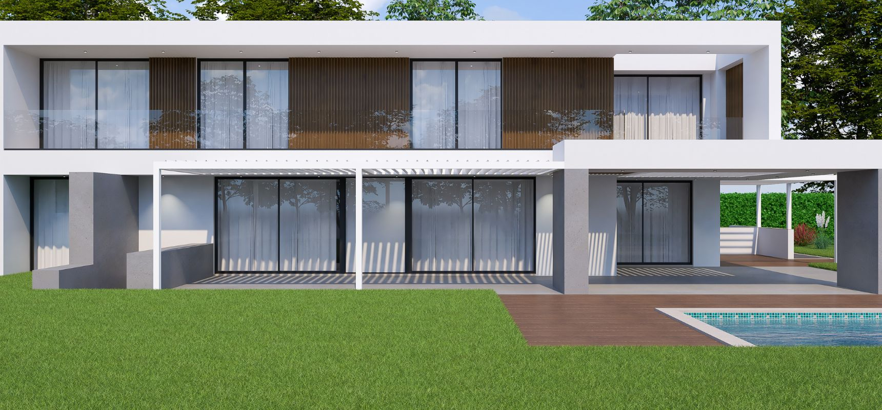 Localizado na Quinta da Marinha, em Cascais, este projeto apresenta uma arquitetura minimalista e moderna, com linhas retas e elegantes. Asdtrês pergolas, criam um efeito de sombra convidativo, perfeito para relaxar e desfrutar da beleza natural da região.