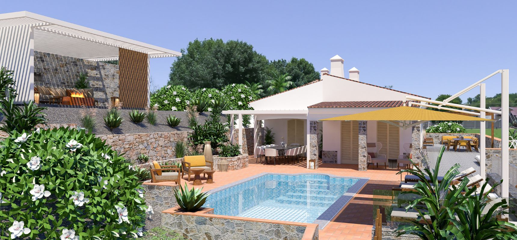 Nesta bela moradia conservámos a arquitetura tradicional algarvia e fizemos a criação de vários espaços exteriores, com um ambiente confortável e acolhedor.