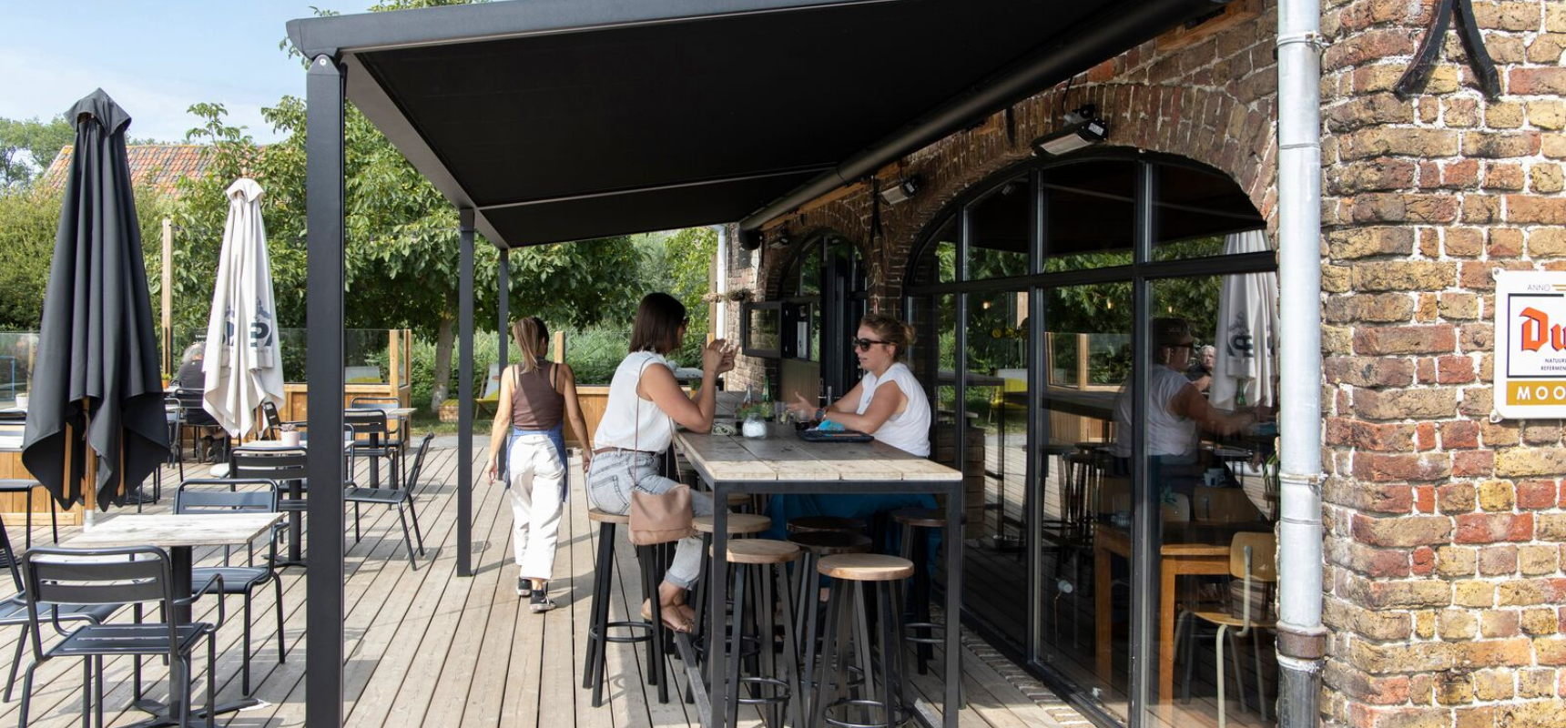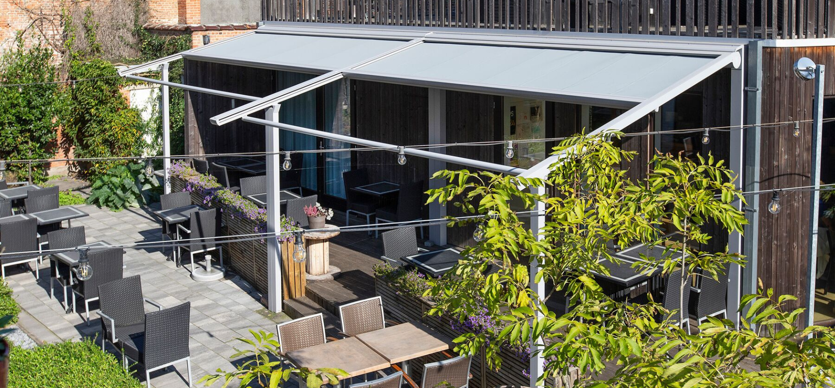 A pérgola Brustor B128 é uma solução versátil para proteção contra o sol, especialmente apreciada pelo seu design minimalista e amplas possibilidades de personalização. O seu design inteligente proporciona uma vista panorâmica do seu jardim e permite a entrada abundante de luz natural em sua casa. A B128 é sempre fixada na parede e junta as vantagens de um toldo com os benefícios de uma cobertura de pátio.