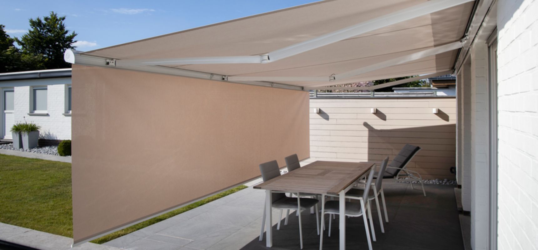 O B25 Standard está disponível numa vasta gama de acabamentos para complementar a sua decoração existente, integra-se perfeitamente no estilo arquitectónico da sua casa. Quer prefira um estilo mais clássico ou contemporâneo, o Padrão B25 irá, sem dúvida, melhorar a sua propriedade. O B25 permanece como a solução original e duradoura da Brustor, continuando a manter a sua posição como o nosso toldo retrátil mais procurado. A razão clara por trás de sua popularidade duradoura reside na facilidade de uso.