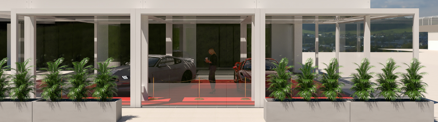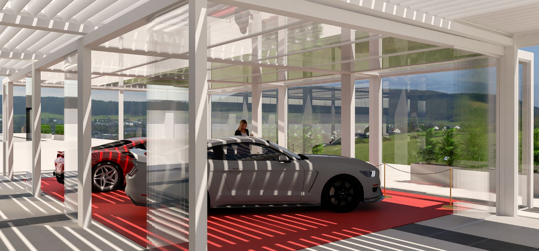 Projecto de Pergolas para stand de carros de luxo, na marina de Cascais.
